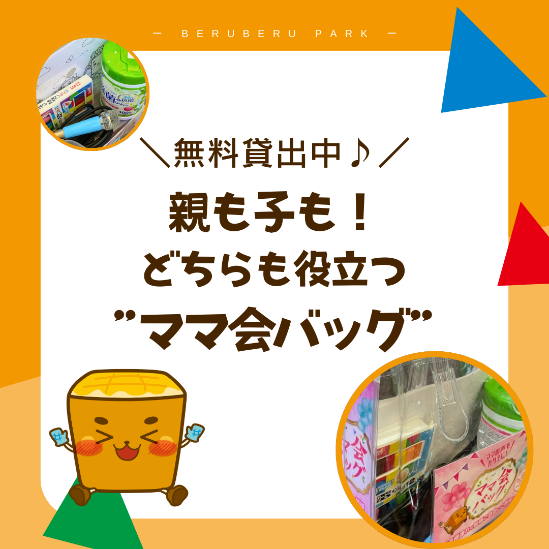 べるべるパークでは、お子様連れのお客様に「ママ会バッグ」を無料でお貸出ししています。渋谷店にご来店の際、受付時にスタッフよりお渡しいたします♪ ママ会バッグは便利アイテムが入った無料貸出品です! お子様連れのお客様の声を … 続きを読む 親も子も!どちらも役立つ“ママ会バッグ”をご紹介