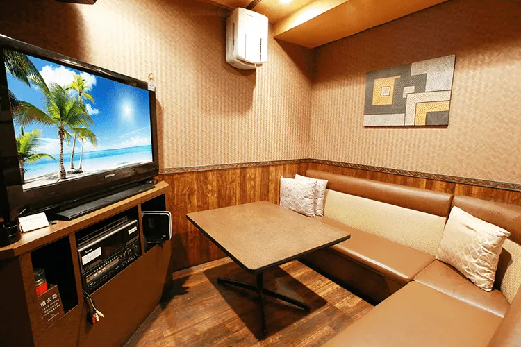 | 設備 | ・DVD&Blu-rayプレーヤー ・スマホ接続用コネクター ・カラオケMUEシステム ・スマホ充電器 ・バースデーネオン ・Fire TV Stick |