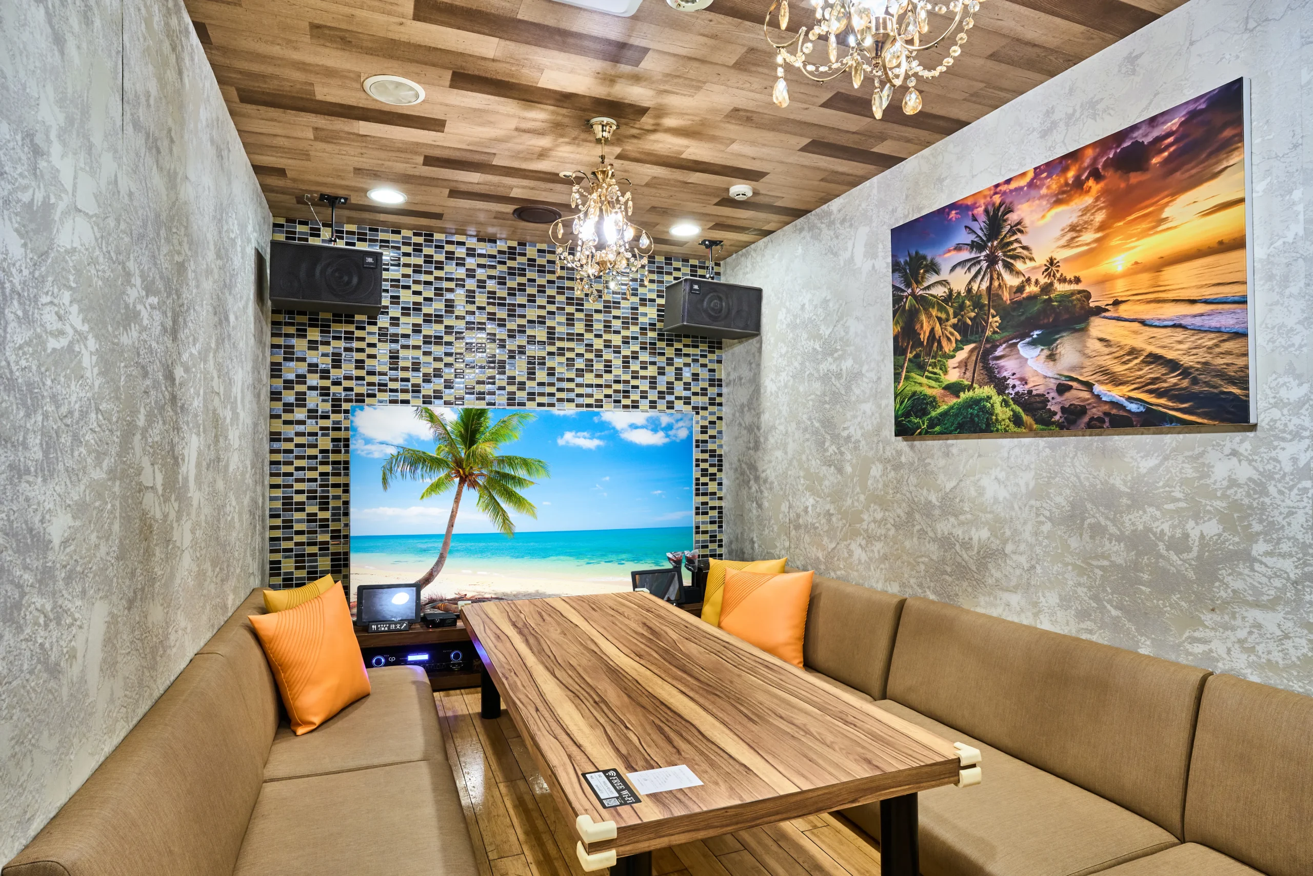 ・DVD&Blu-rayプレーヤー ・スマホ接続用コネクター ・スマホ充電器 ・カラオケMUEシステム ・バースデーネオン |