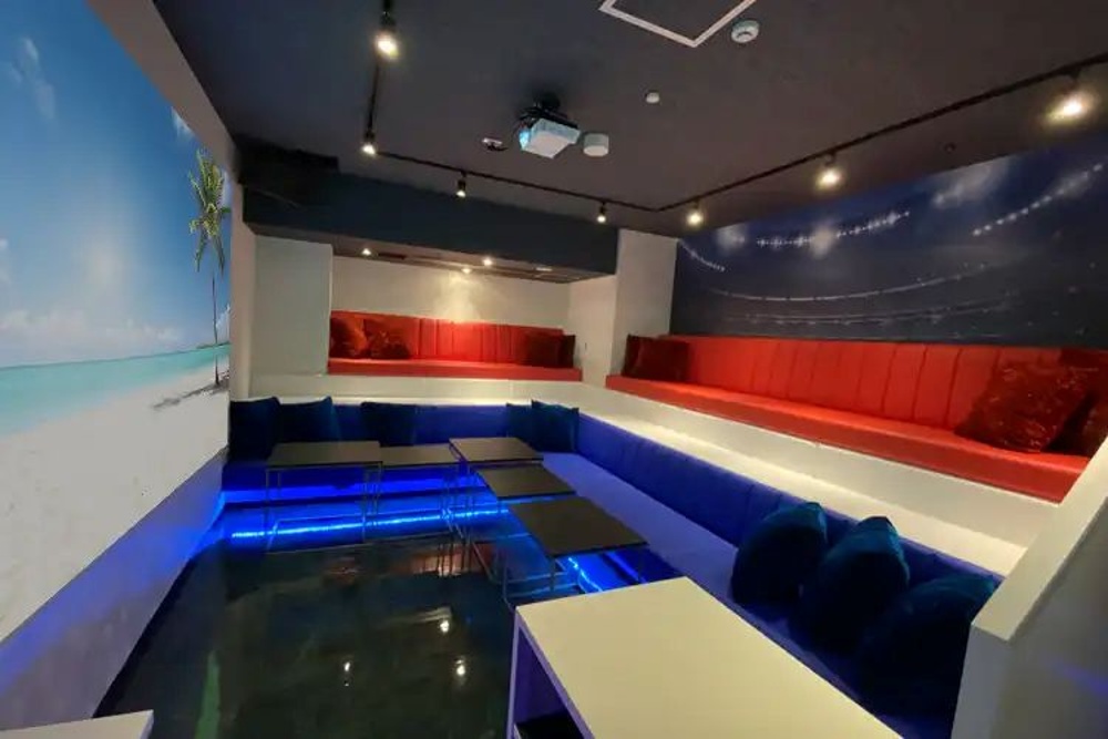 その日の気分や一緒に観る相手に合わせて、「みんなで盛り上がる」オープンスペースか、「ゆったり楽しむ」個室を自由に選べるのがスリモン流!