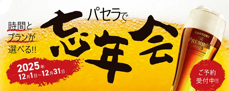パセラの忘年会コース2025|選べる4つのコース&飲み放題