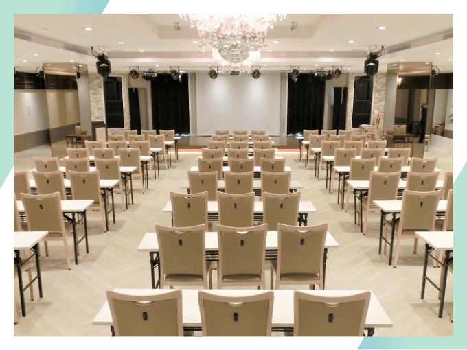 社員総会や研修など、大人数でのご利用におすすめの会場をご紹介します。いずれもステージ・大型スクリーン・音響設備を完備し、発表会や表彰式にも最適です。