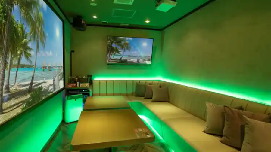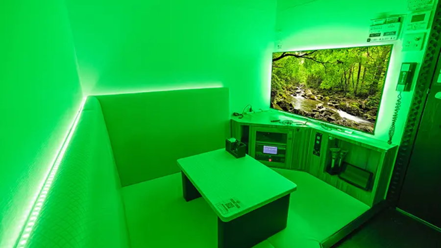 プロジェクター付きの大画面カラールーム!推し色に染まりながら迫力の映像を楽しめます。
