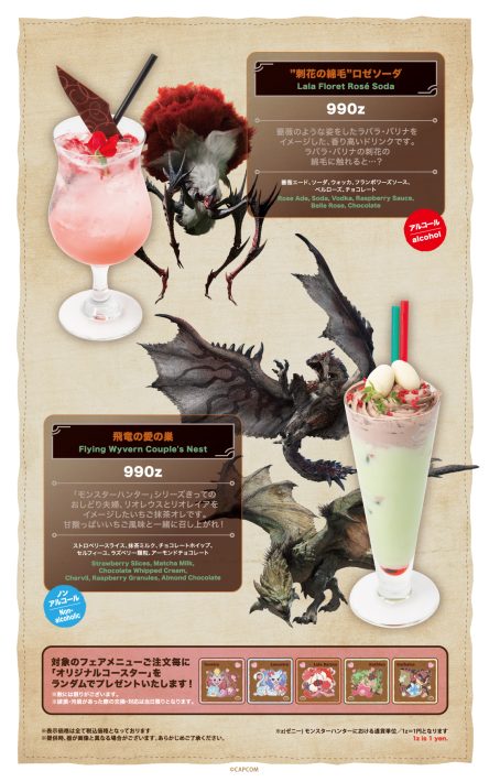 モンスターハンターシリーズきってのおしどり夫婦である「リオレウス」&「リオレイア」の“愛の巣“をイメージしたドリンクや、