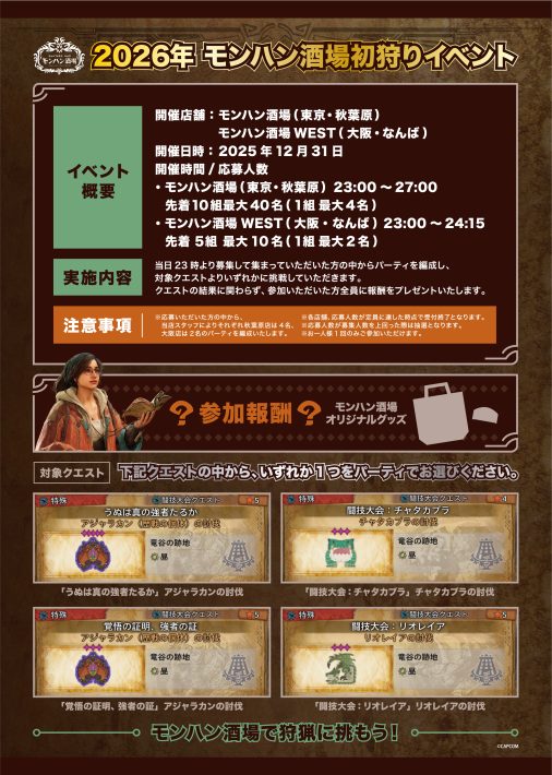 また、2025年12月31日(水)23:00からは『2026年モンハン酒場初狩りイベント』を開催いたします!