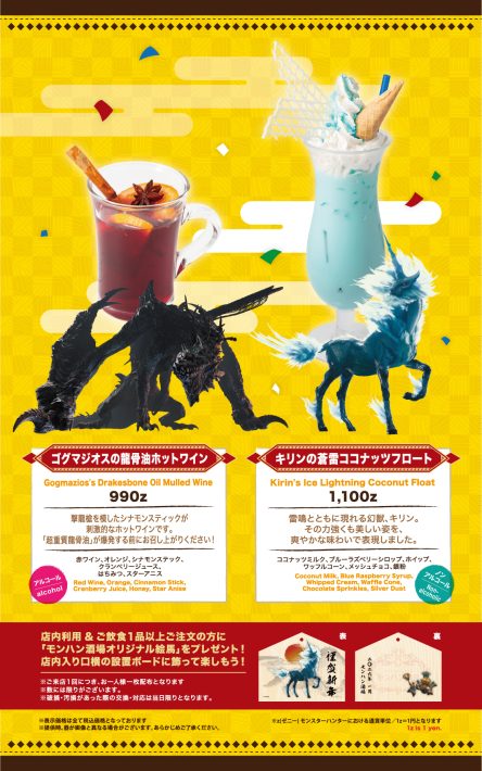 「モンハン酒場(東京・秋葉原)」「モンハン酒場WEST(大阪・なんば)」では、大晦日と元日はそれぞれ特別営業を行います。