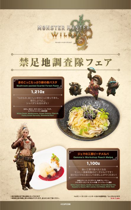 『モンスターハンターワイルズ』」の『「禁足地調査隊』のキャラクターたちが、モンハン酒場のメニューとなって登場する「禁足地調査隊フェア」の開催が決定いたしました!