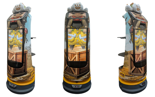 『モンスターハンターワイルズ』に登場する「オトモアイルー」の姿をした配膳ロボット『KettyBot(ケティボット)』を導入。ハンターの皆さまのテーブルへメニューをお届けします!