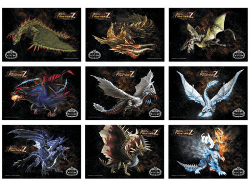 『モンスターハンター フロンティア』のフィナーレを飾るノベルティは、上記フェアメニューを1品注文毎にGETできる「オリジナルポストカード」(9種類)。表面にはシリーズで人気を博したモンスターがデザインされている! 一方、全9種類を集めるとカード裏面には…!?