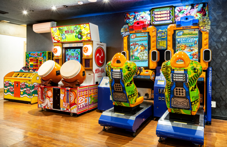 カラオケで盛り上がったあとは、新設のゲームセンターで白熱バトル。無料なので、気軽にトライできるのが魅力です。お友達同士やご家族で、思う存分遊びつくしてください!