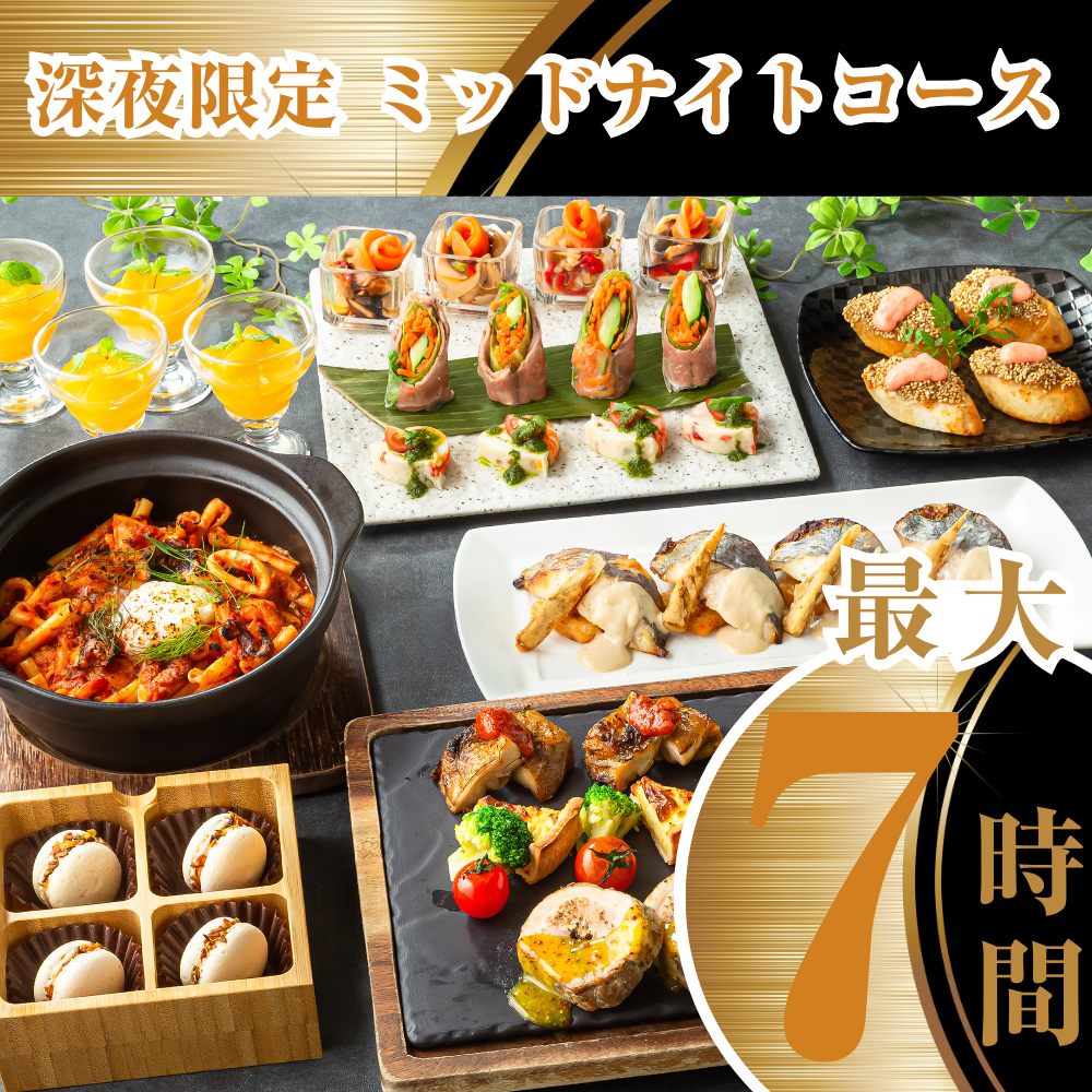通常の3時間料金で最大7時間楽しめる「ミッドナイトコース」は、夜をたっぷり満喫したい方におすすめ。季節ごとに変わるメニューで、訪れるたびに新しい味と出会えます。
