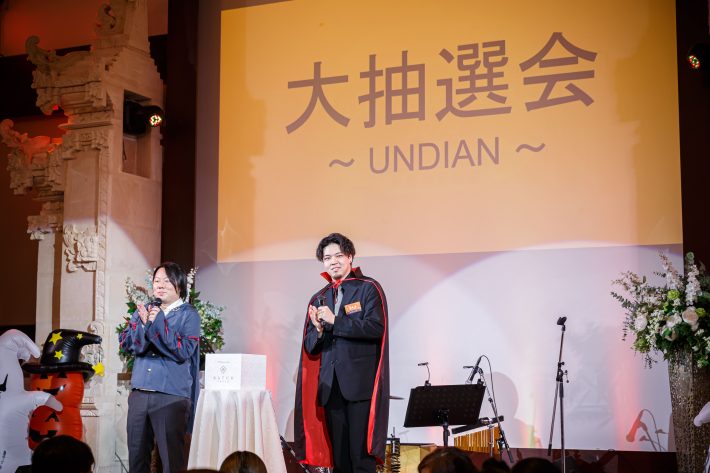 ハロウィンナイトの目玉のひとつ、抽選会!バリアンの宿泊チケットのほか、パセラグループのホテルやレストラン招待券が当たる抽選会。会場からも熱気と歓喜の声が溢れていました。